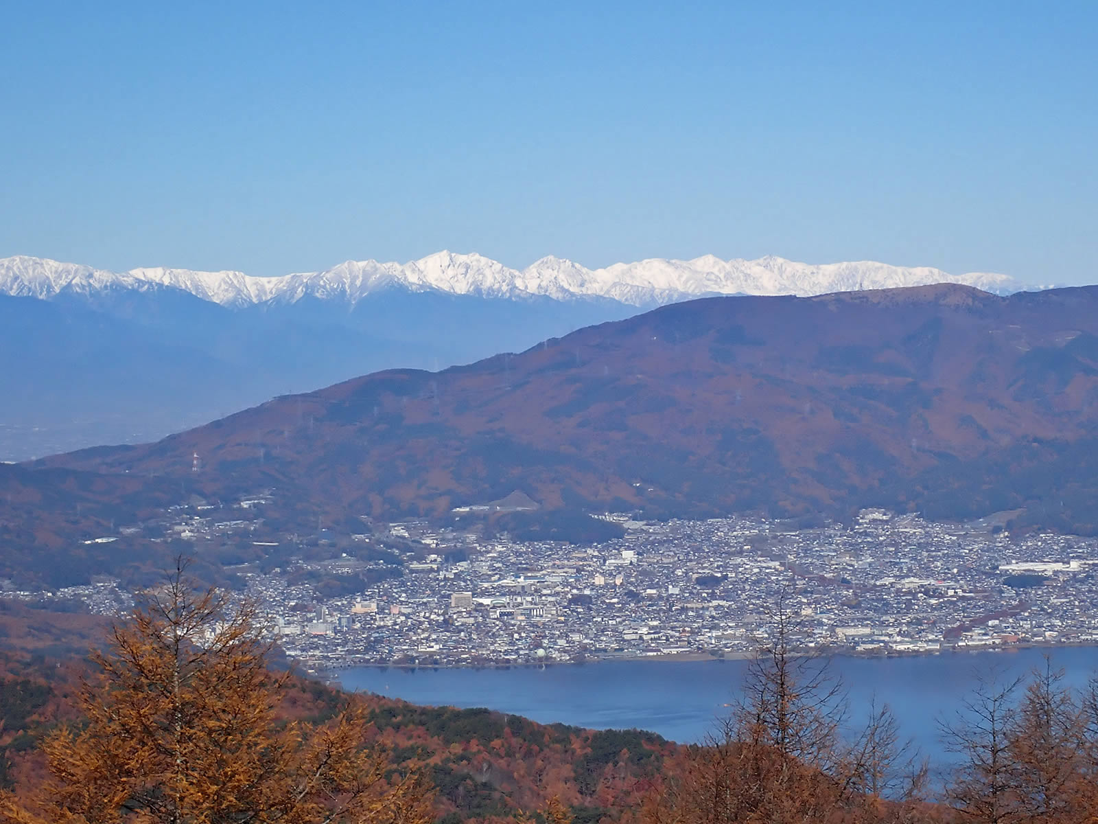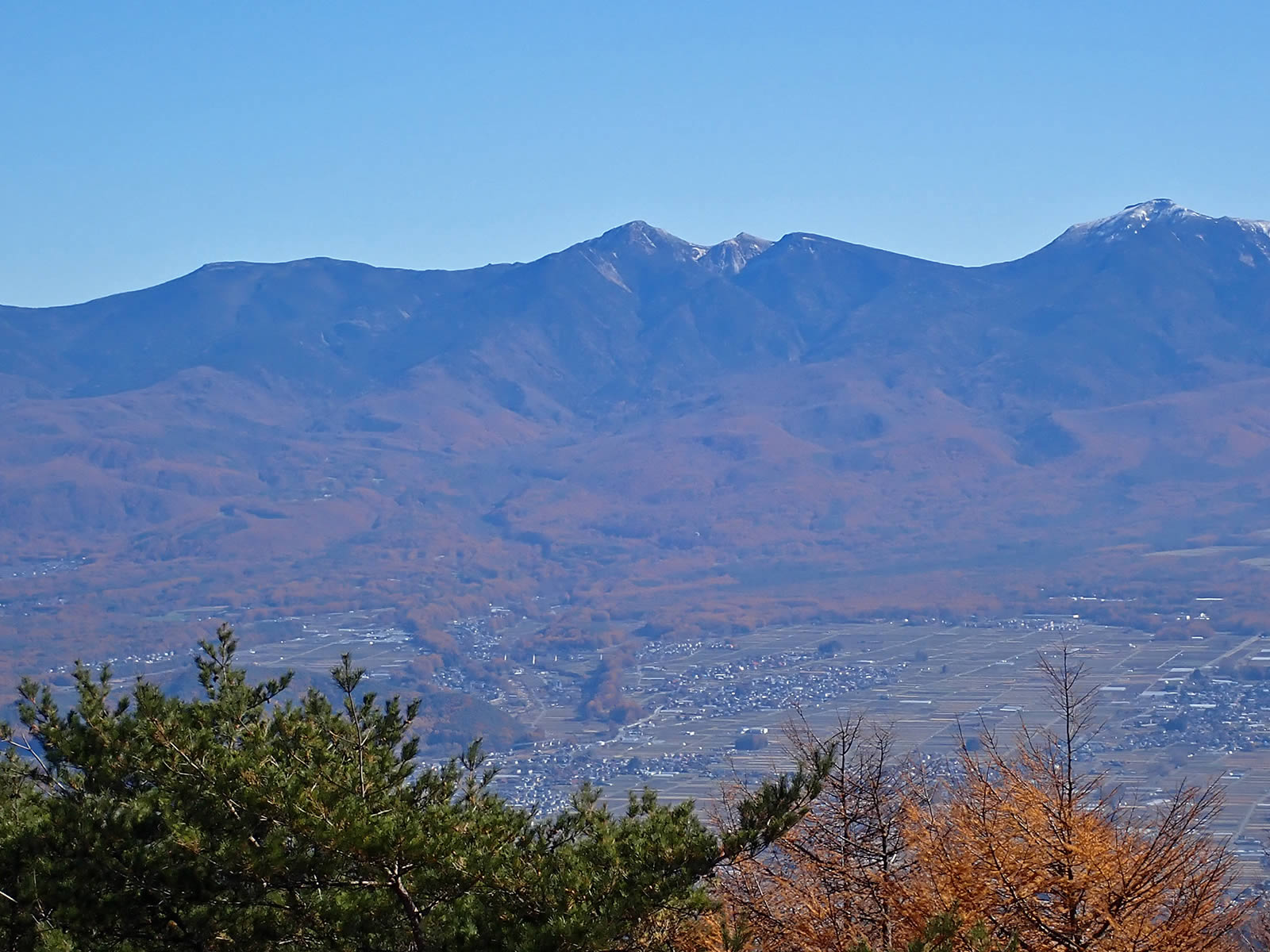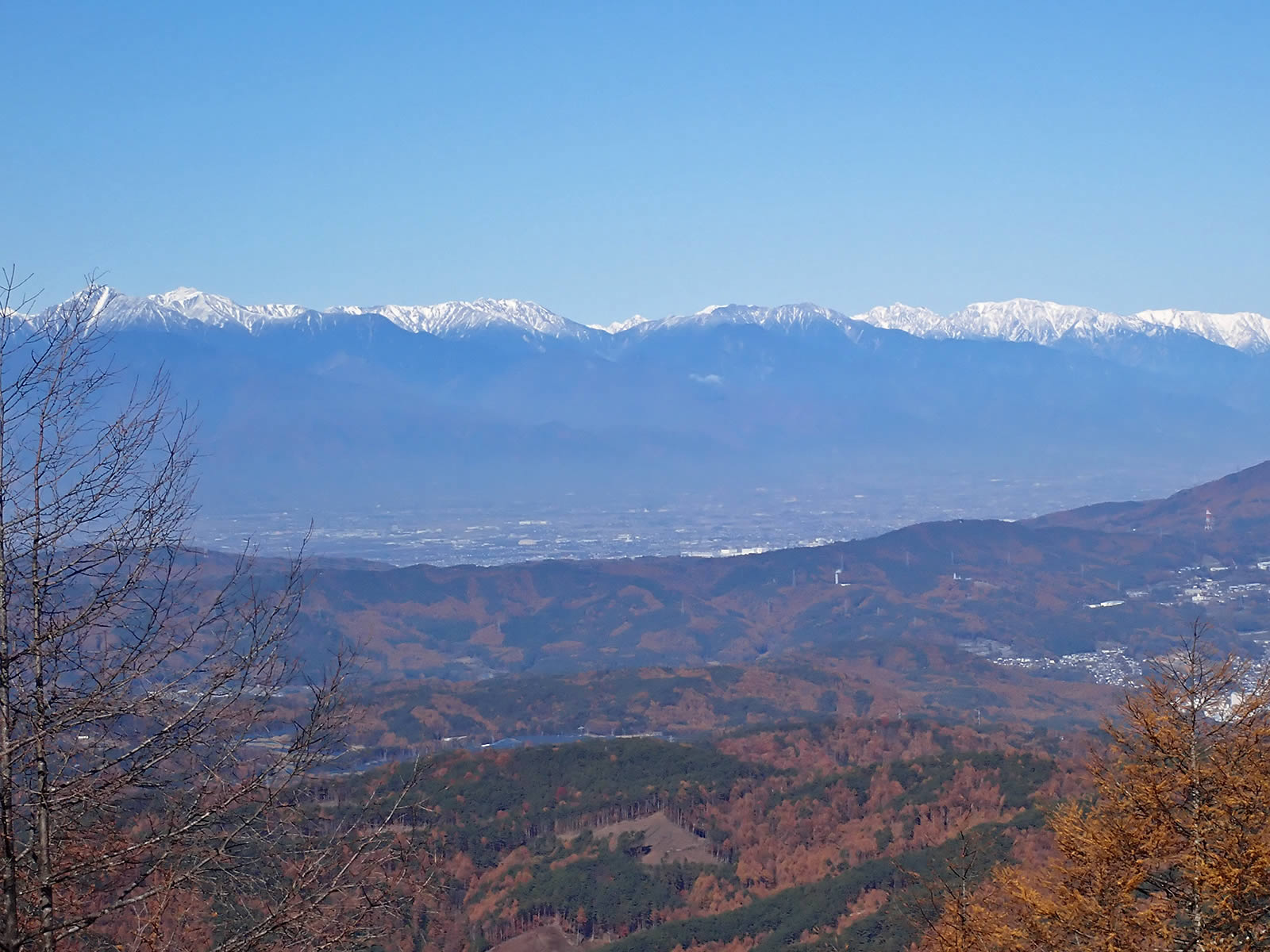 もみじや広葉樹の紅葉は麓でそろそろ見頃、武居城跡森林公園からピークを迎えていました。カラマツの黄葉はほぼ全山で見頃でした。