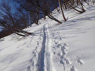 尾根上をひたすら直登するトレースです。
