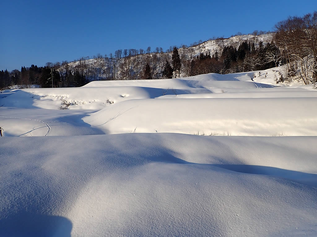 向かう途中、温井地区手前まで周囲に雪が少なく心配になりましたが、温井地区に入ると一気に積雪が増えてびっくりしました。さすが雪国です。