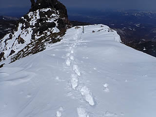 あれれ、トレースはここまで。この先は山頂までノートレースでした。