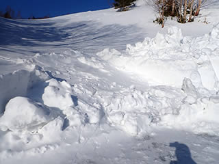 それでも吹き溜まりは20cmほど。ただ帰りに滑るとすっかりもなか雪になっていました(^^;。