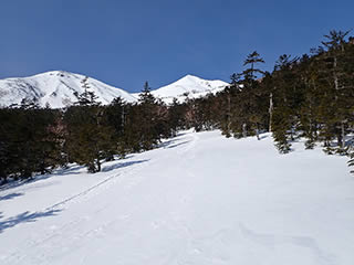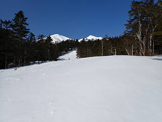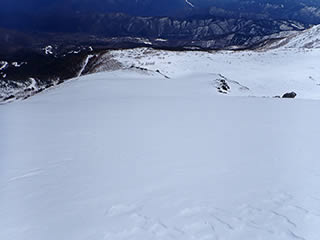 位ヶ原から下る斜面は見事にすっかりもなか雪に(^^;。