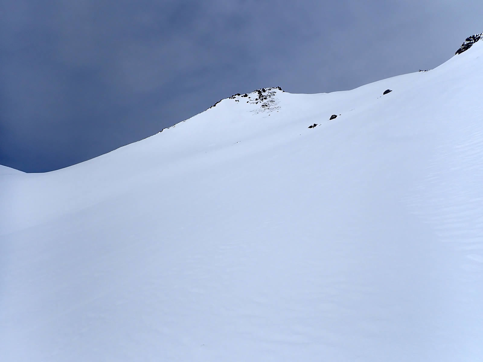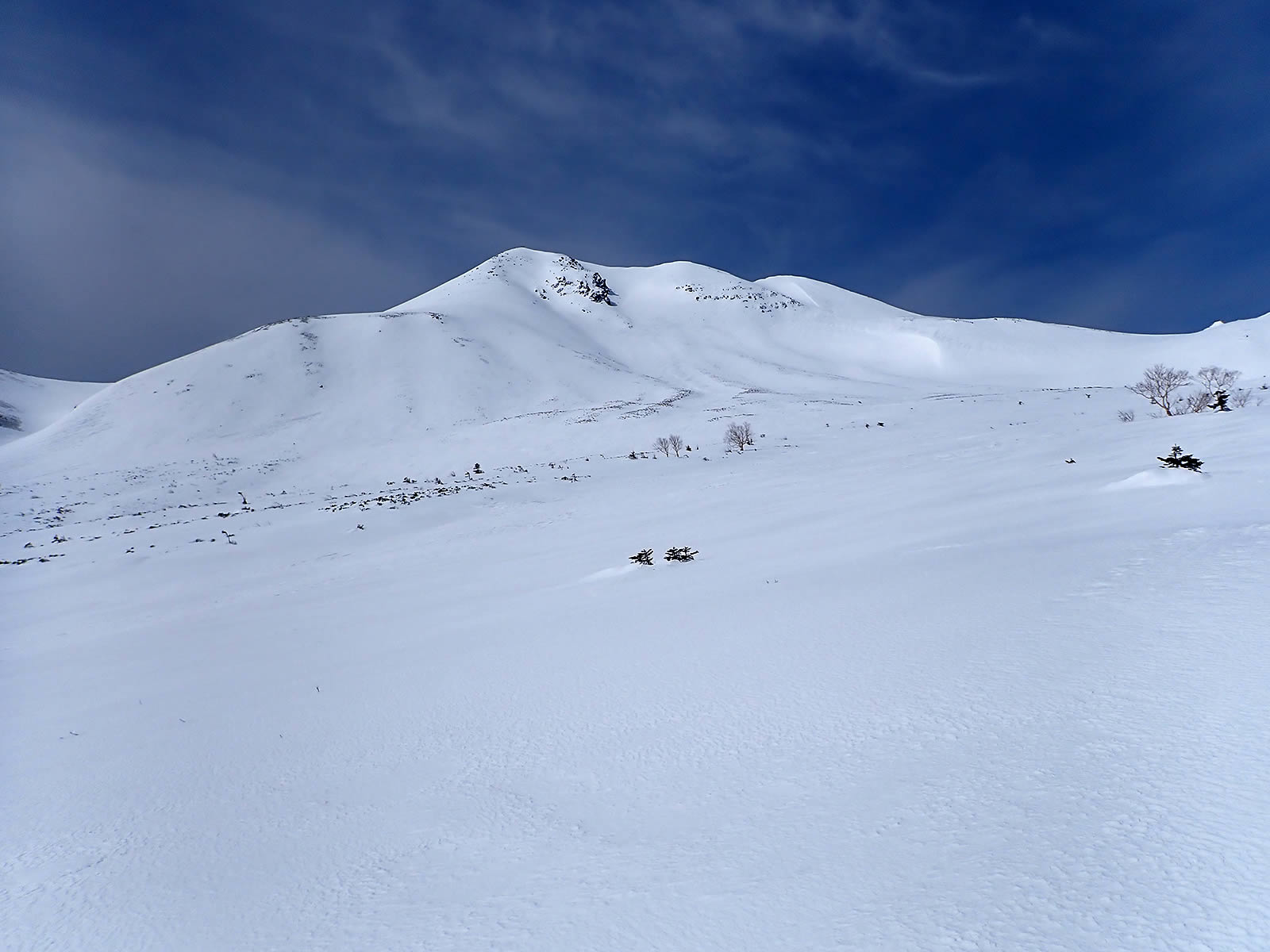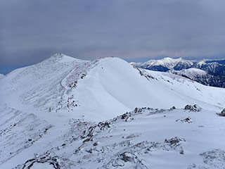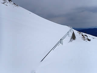 剣ヶ峰。部分的に吹き溜まってそうですが、どうしよう。