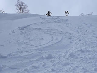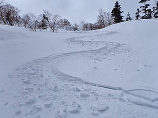 ただツアーコースの新雪は数cmほどと期待したほどではありませんでしたが、滑り台上部には20cmほどのもっさり気味ながら新雪が積もっていて、気持ち良く滑ることが出来ました。
