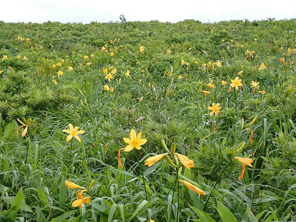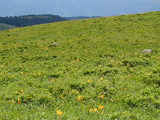ニッコウキスゲは車山高原側は中腹がちょうどピーク、満開で、上部は3分咲きか等感じでした。車山肩側は3〜5分咲きという感じでした。