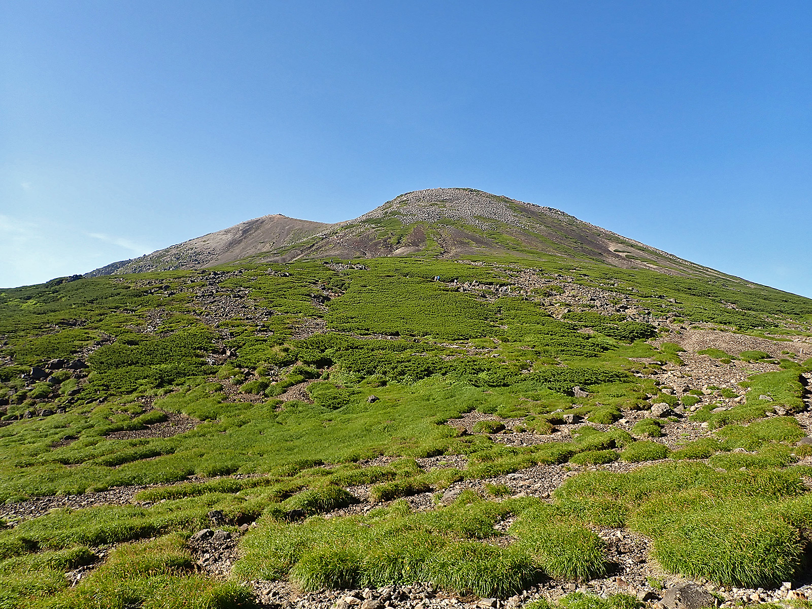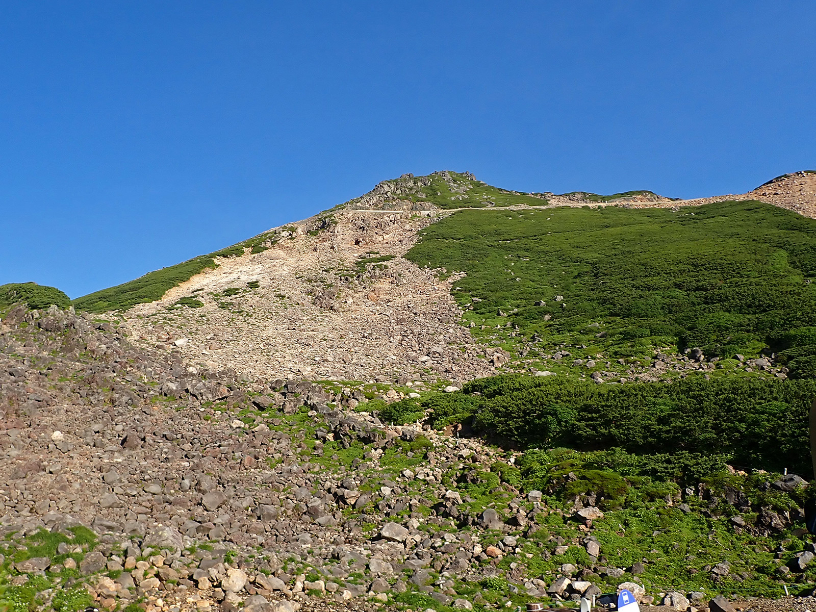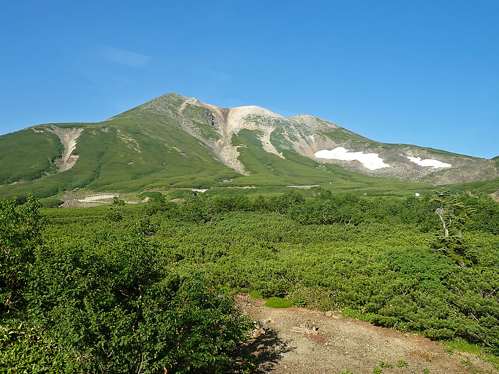 剣ヶ峰。積雪期はあのピークからスキーで滑りました。