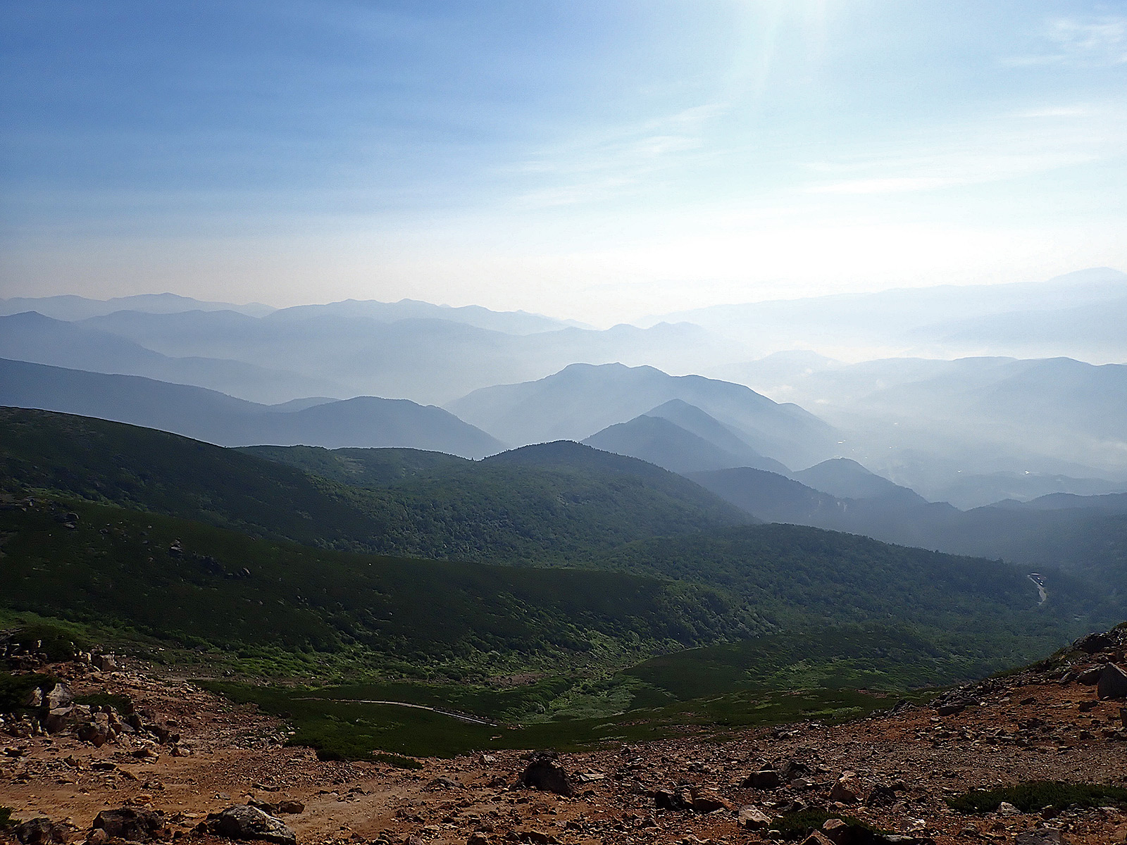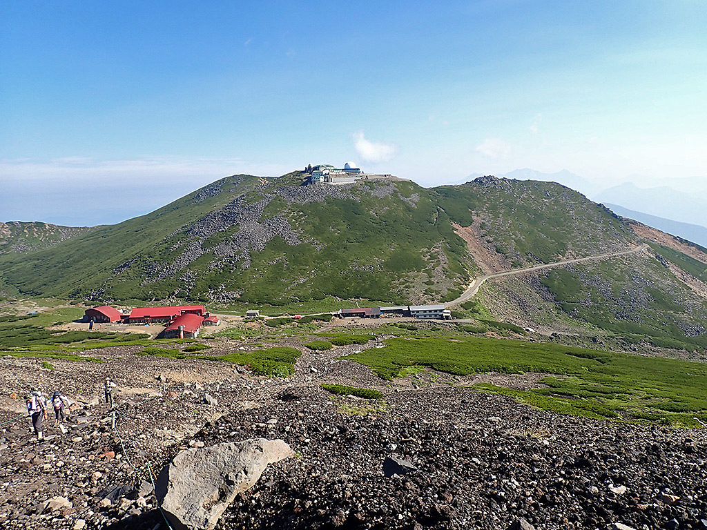 剣ヶ峰を振り返ります。まだこちらは快晴。