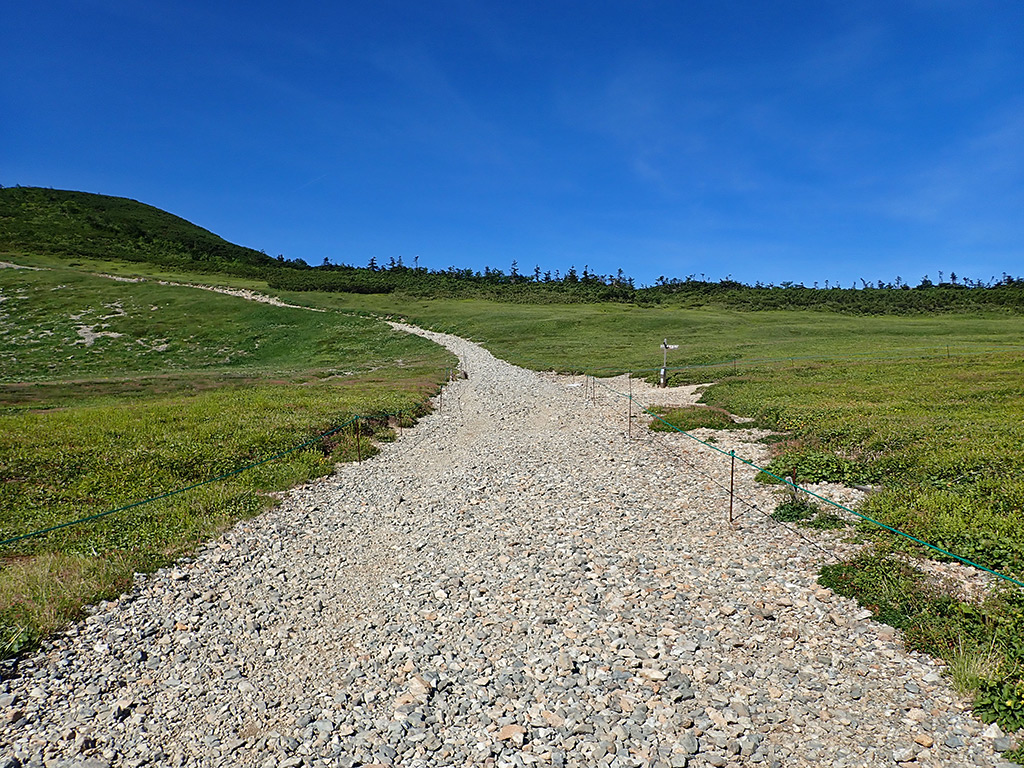 登山道の周囲の笹が刈り払われていて歩きやすくなっています。