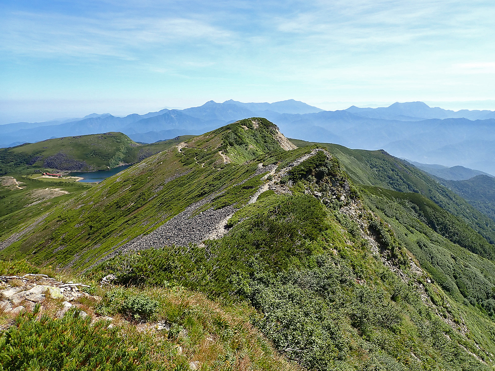 最高の稜線歩きが続きます。これでもう少し風があって涼しければ(^^;。