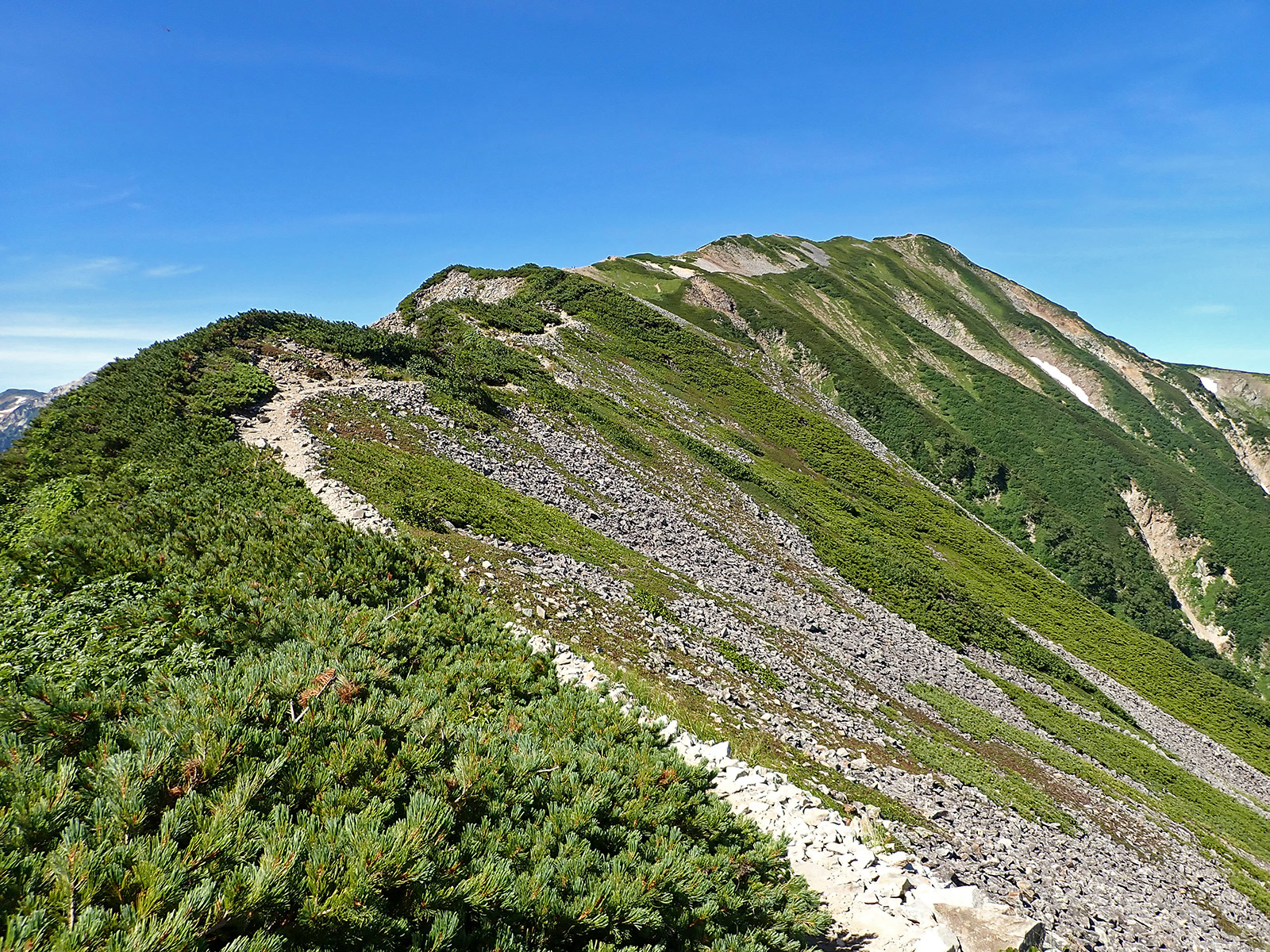 この日、白馬岳周辺は11時頃まで全くガスが湧かない最高の天気に恵まれ、気持ち良い稜線歩きをたっぷりと楽しむことが出来ました。