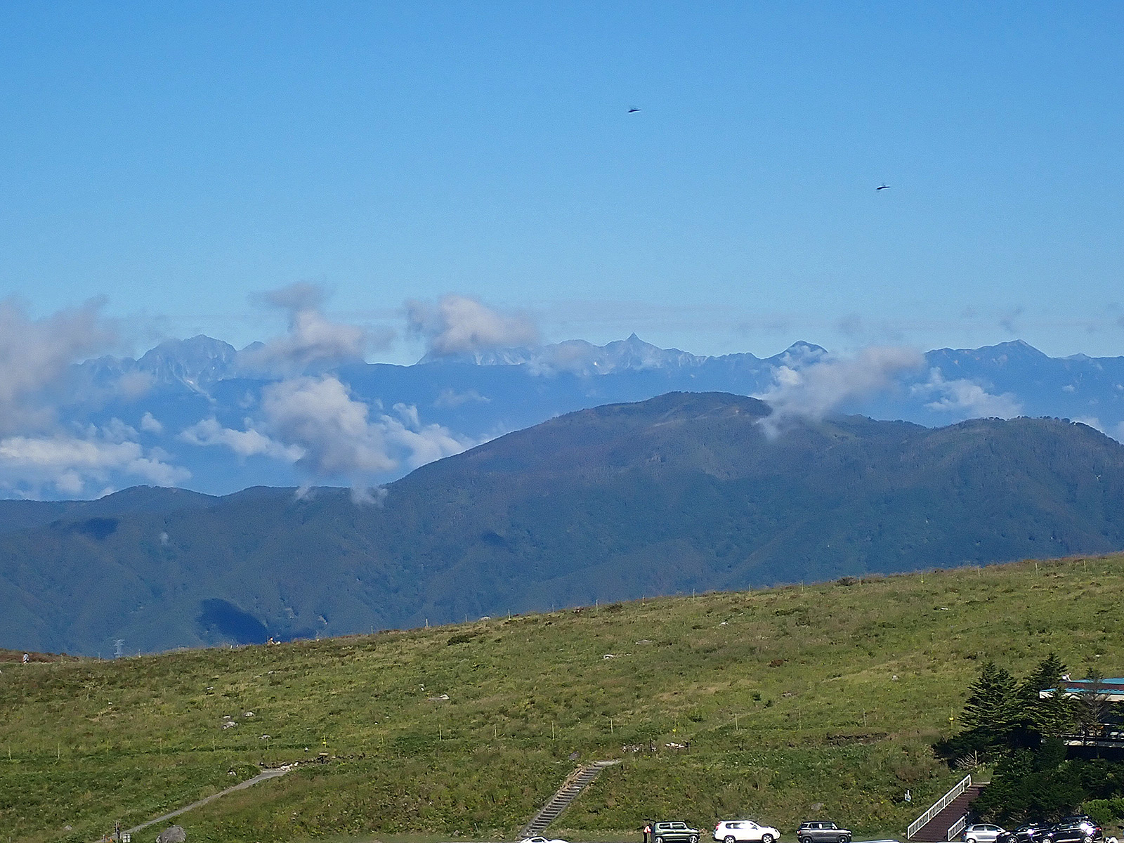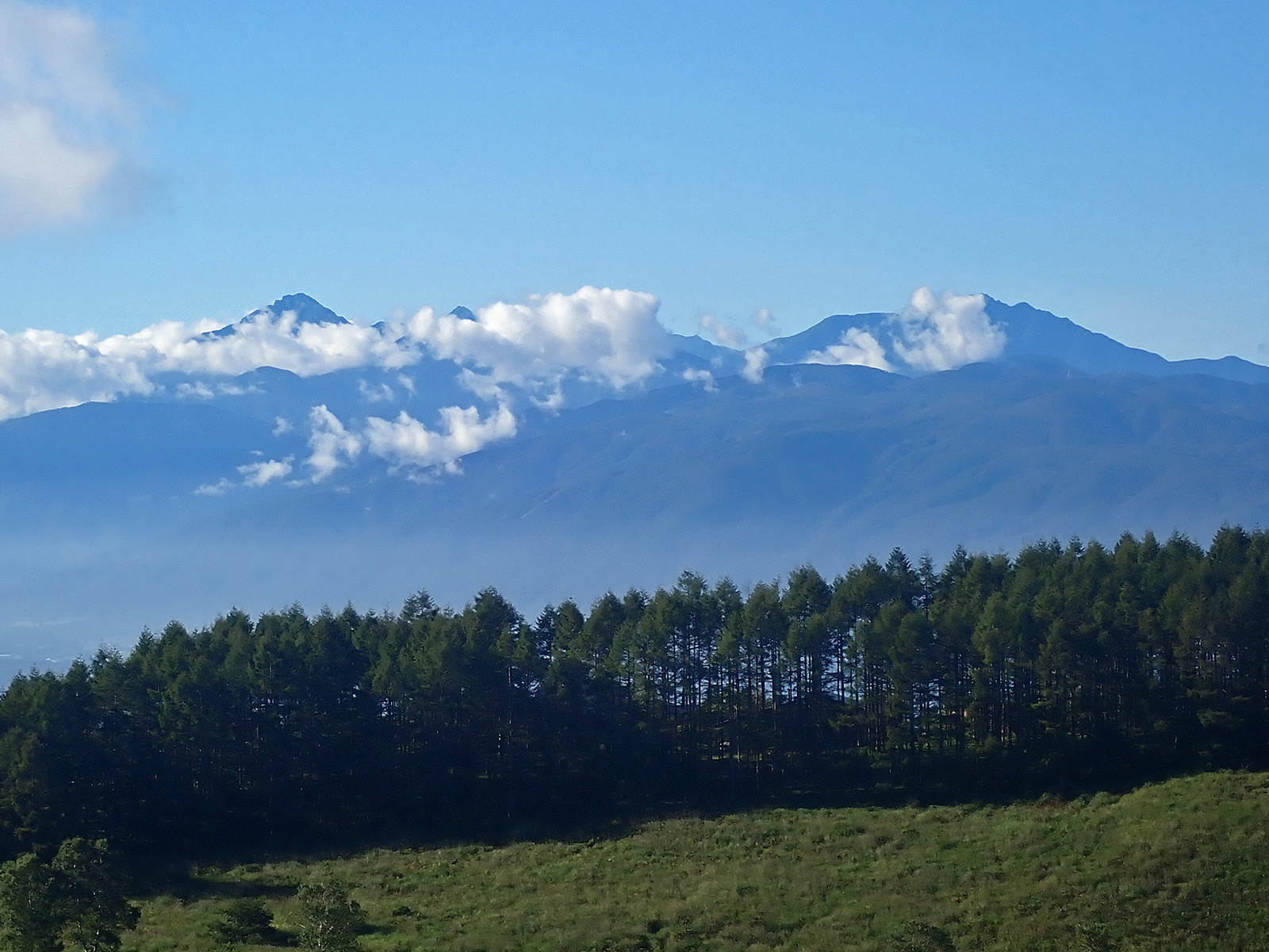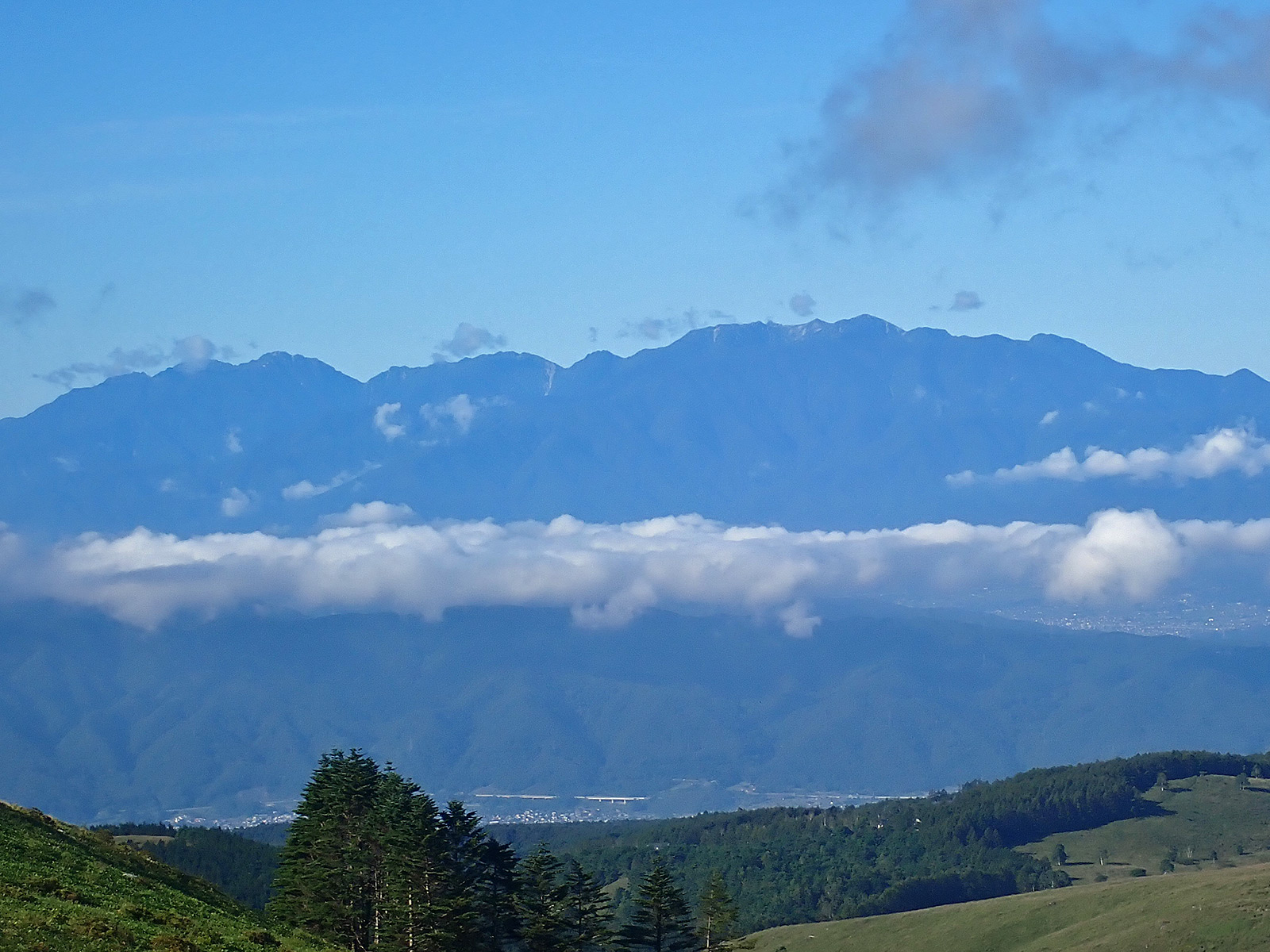 北アルプスの稜線には少しガスがかかり始めています。あるいは手前の鉢伏山のガスか。