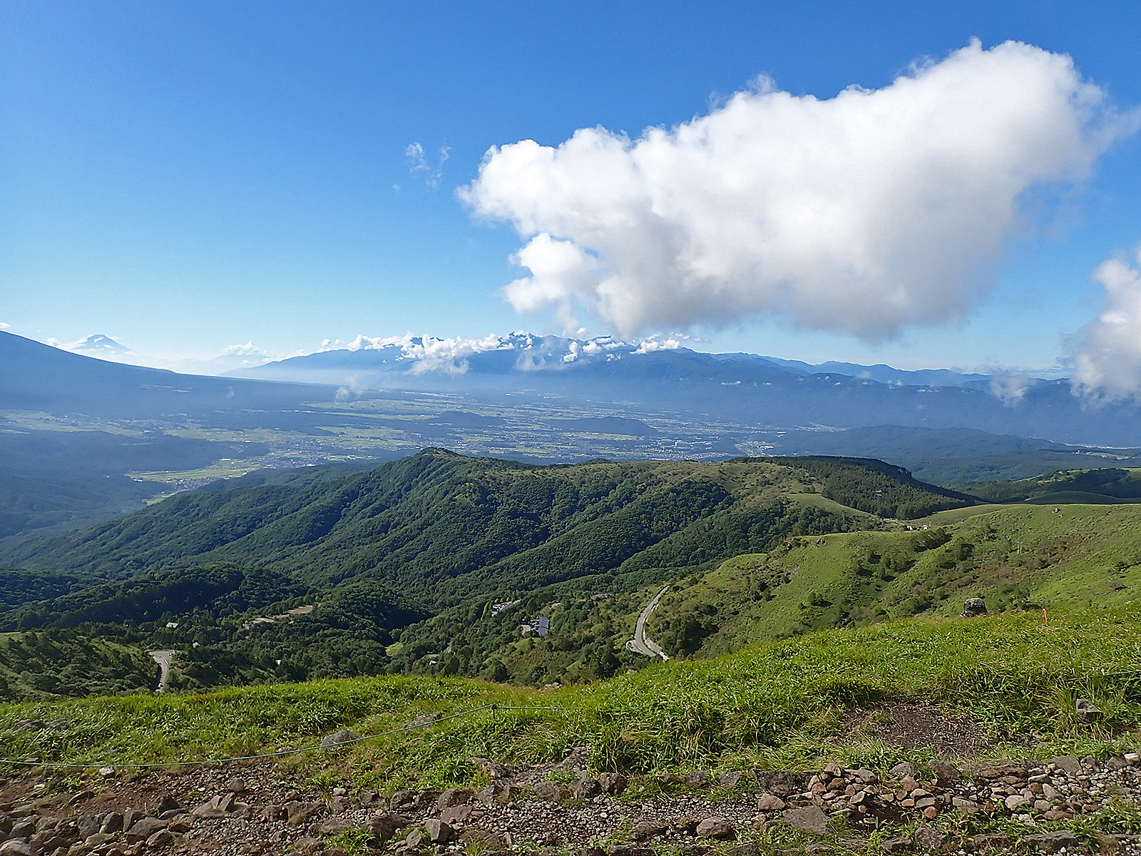この日の朝、台風前ですが意外と天気が良さそうでしたので、地元の車山の花の様子を見に出かけて来ました。 早朝から富士山や八ヶ岳等の稜線には少しガスがかかっていて、その点は少し残念でしたが、でも気持ち良い青空の下、秋の花を楽しみながらの高原散歩を楽しむことが出来ました。 アキノキリンソウ、ウメバチソウ、マツムシソウ、トリカブトといった秋の花に加え、ハクサンフウロなど夏の花もまだまだ残っていました。 また車山湿原のレンゲツツジは少しずつ色付き始めていました。