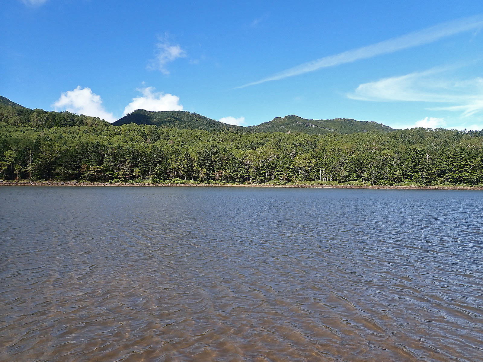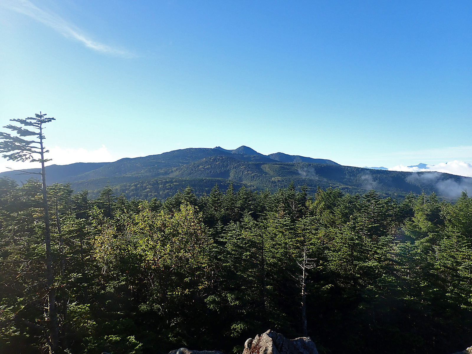 7時13分、中小場。目指す茶臼山と縞枯山が見えてきました。