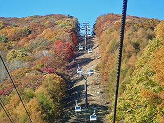 ゴンドラからも紅葉を楽しみます。登って行く途中で目立っていたもみじ。