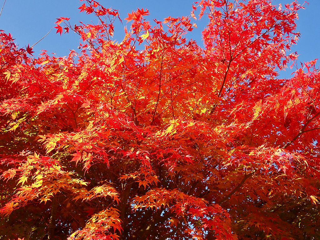 最近まれに見る快晴となり、見渡す限り雲一つ無い素晴らしい展望を楽しむことが出来ました。また紅葉は上の方は広葉樹は後半でしたがカラマツはちょうど見頃でした。また麓のゴンドラ乗り場周辺のもみじがちょうどきれいに色付いていて、真っ赤な紅葉も楽しむことが出来ました。