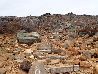 七合目から八合目の急斜面の樹林帯はきれいに紅葉しています。ただ青空に加え日差しも無くなり(^^;、映えません。
