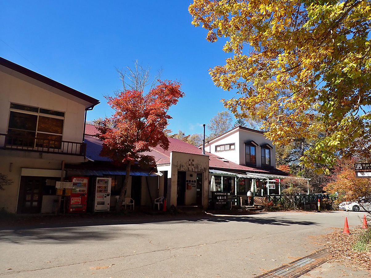富士見平小屋。カラマツの黄葉も見頃。