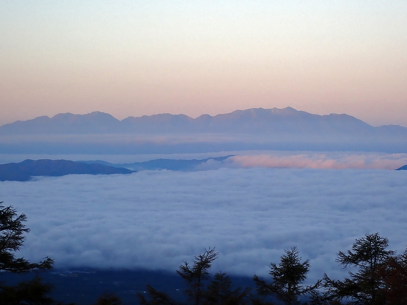 自宅を5時に出発し白駒池に向かいます。途中の展望台より。下は一面の雲海でした。