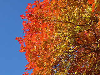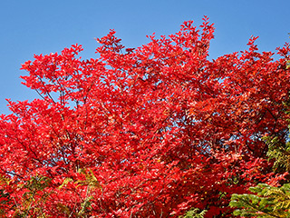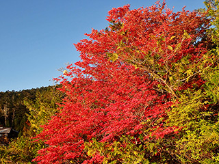 一番色付いているドウダンツツジを再び。本来は皆この色合いになるのですが。