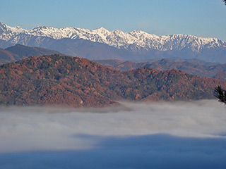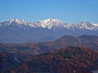 標高990mと標高が低いので、中腹から下では紅葉がちょうど見頃で楽しめました。また低山の割に岩山で、コースも起伏に富んで楽しめました。また北アルプスに近いため、北アルプスの展望も最高でした。