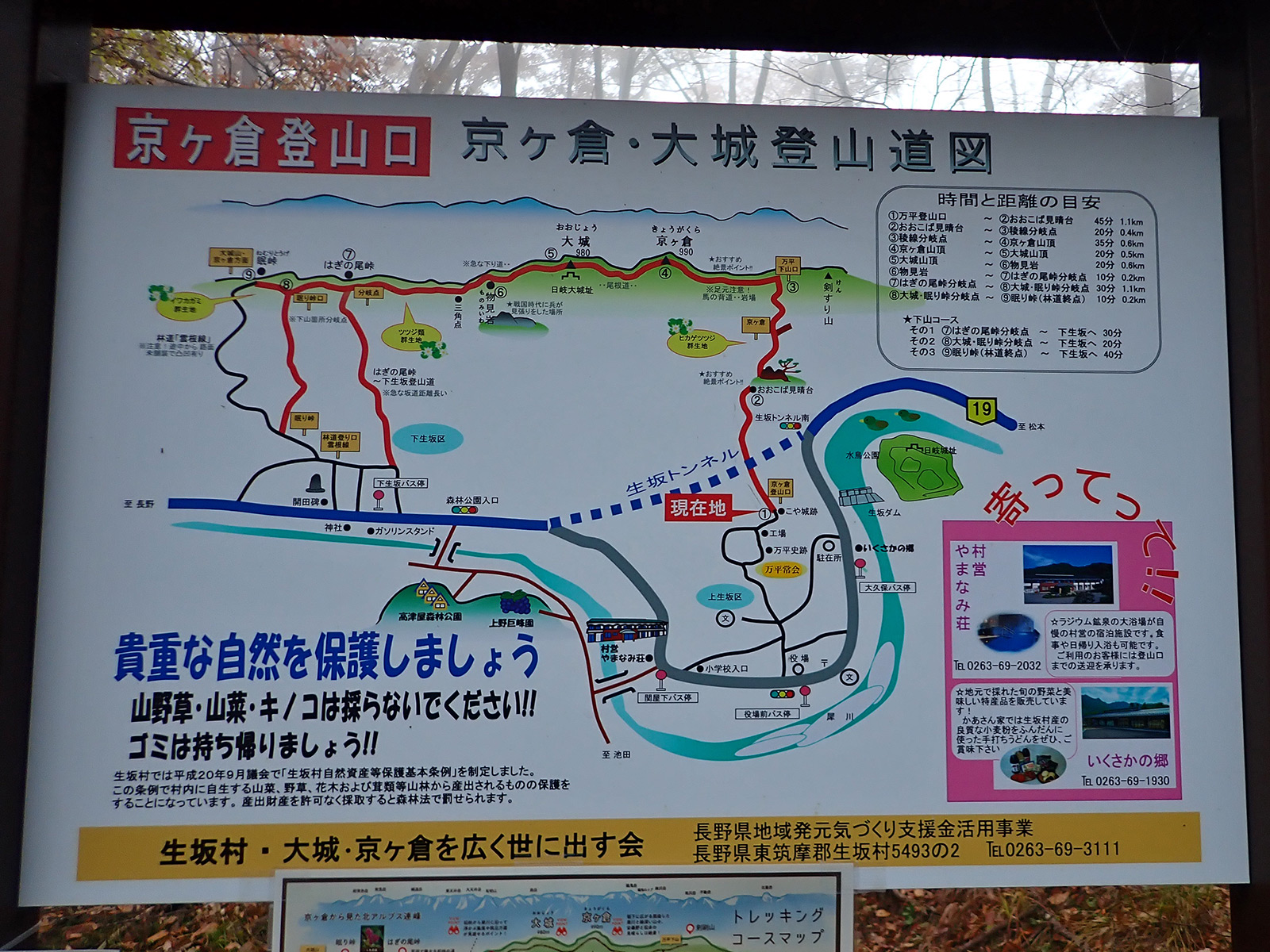 そろそろ里山も標高の高いところは紅葉が終わってきていますので、それならと以前より気になっていた生坂村の京ヶ倉に紅葉と展望を期待して初めて出かけてきました。