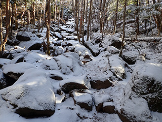 最初の急登は雪は無し。