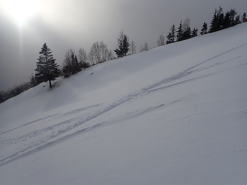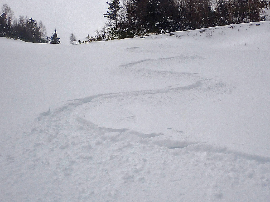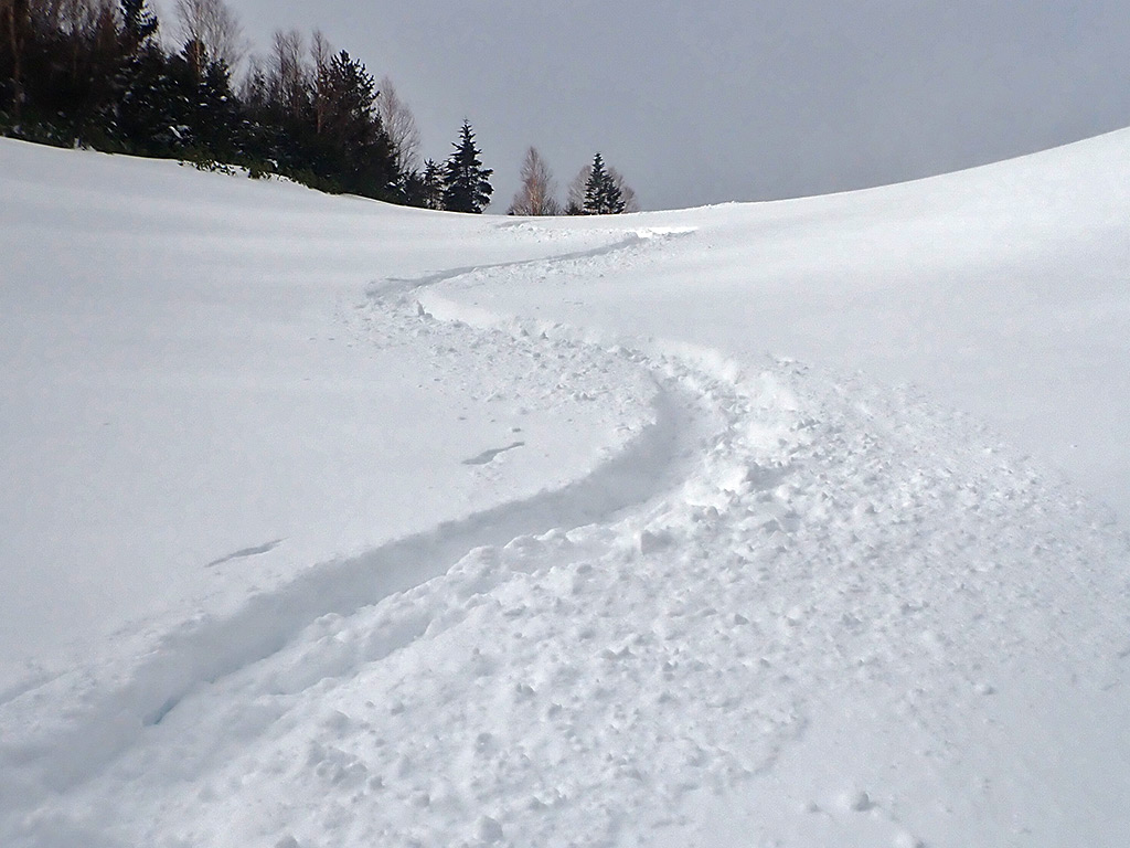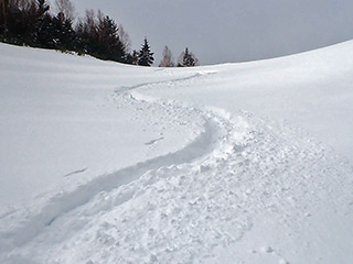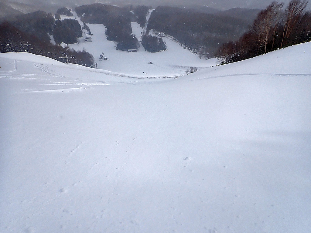 2本目はまだ誰も滑っていない真ん中の斜面を滑ってみます。