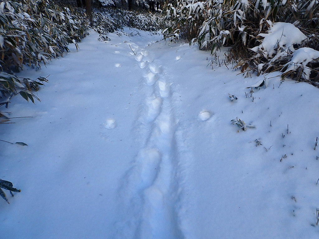 沢入登山口に車を駐めましたが、ここまでの林道には5〜6cmほどの雪が積もっていました。除雪は無し。凍結はありませんでしたが、今日日が当たった部分は溶け始めていましたので、明日の朝は一部凍結となるかも知れません。