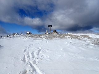 山頂の周囲は強風で雪が吹き飛ばされています。さすがに極寒の強風で写真だけ撮ったらすぐに退散。