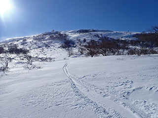 ブッシュを避けて、西側斜面を滑ります。