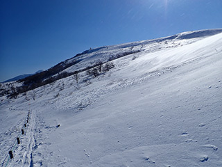鷲ヶ峰。東側斜面はどこも滑れそうな気がしますが、風の影響どうか。