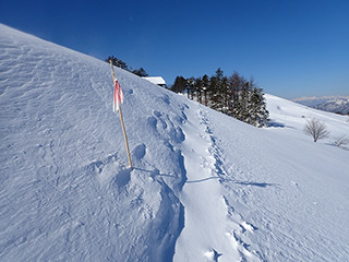 次に一番西側にある斜面に向かいます。吹き溜まりやすい斜面です。