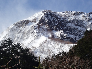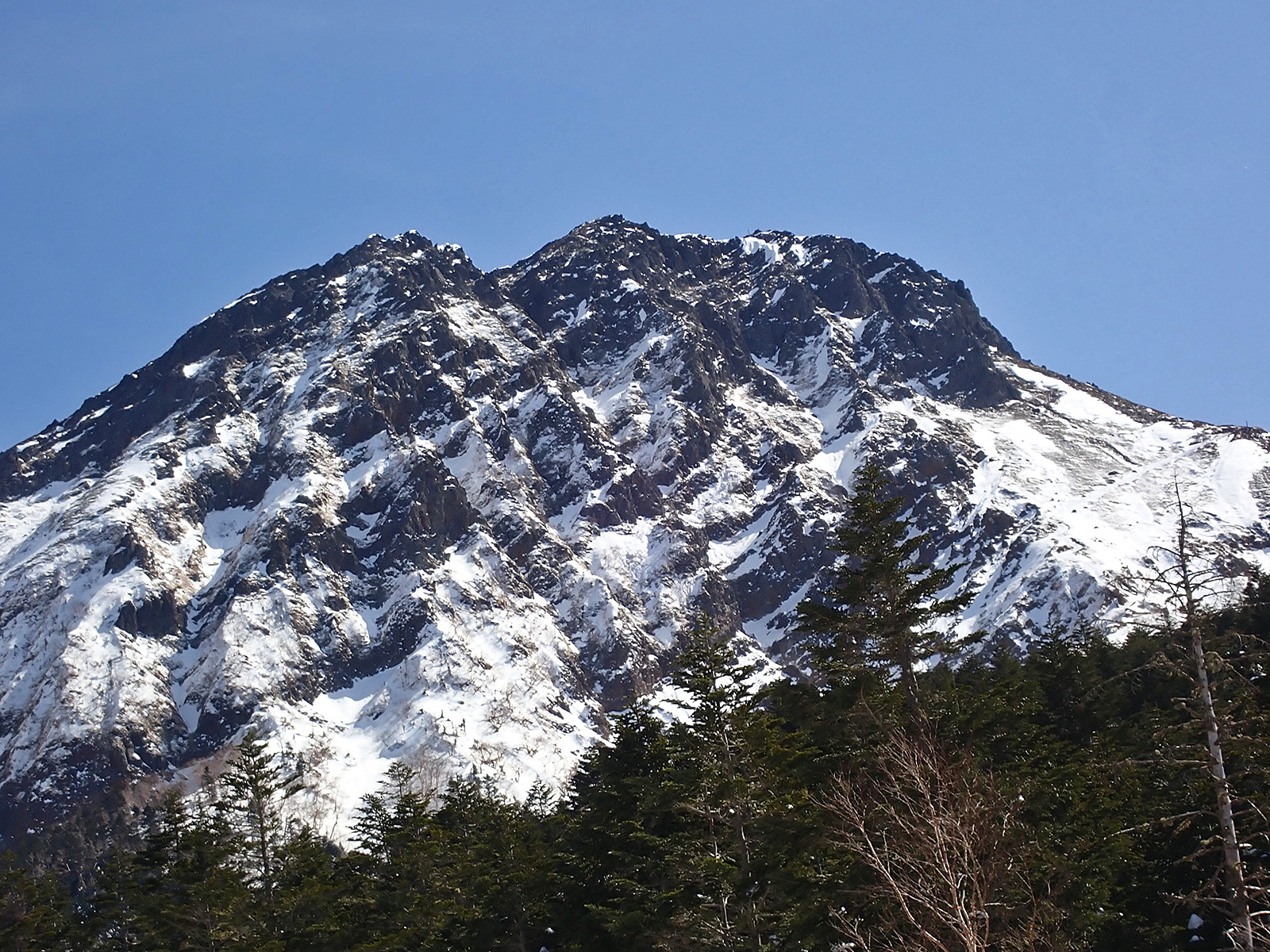 阿弥陀岳、中岳。予定では文三郎・中岳経由で中岳沢を滑ってみようと思っていたのですが、稜線の暴風を見て諦めました。