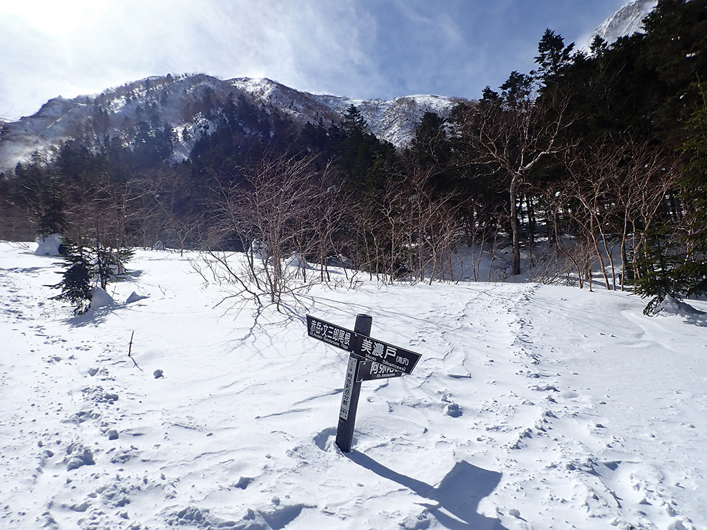 自宅を6時に出発して美濃戸口に向かいます。6時30分、美濃戸口に到着。美濃戸までの林道の凍結が心配で美濃戸口に車を駐めました。1日500円。 美濃戸への林道は四駆+金属製チェーン+SUV等車高の高い車が必須と思われます。