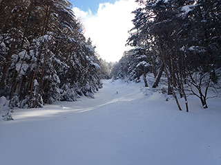 ここは東側斜面なので、風の影響が少なく、また雪も吹き溜まりやすいです。