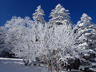 周囲は霧氷と積もった雪で素晴らしい眺めでした。
