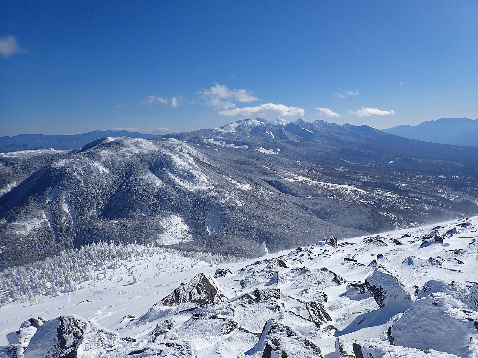 蓼科山北面をズーム。次は山頂からあのオープンバーンを滑り降りたいです。