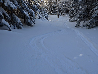 しばらく登山道を滑ったり、周囲の森の中を滑ったり。