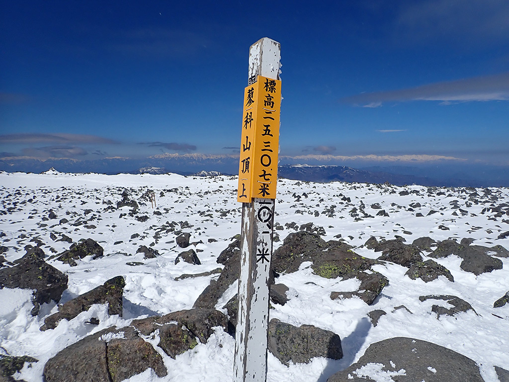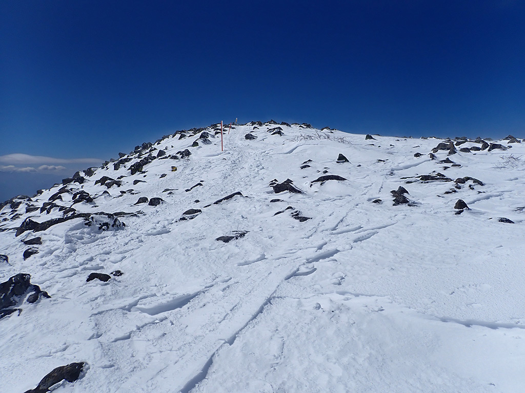 10時54分、山頂に到着。風が強く、また厳冬期並みの極寒です。