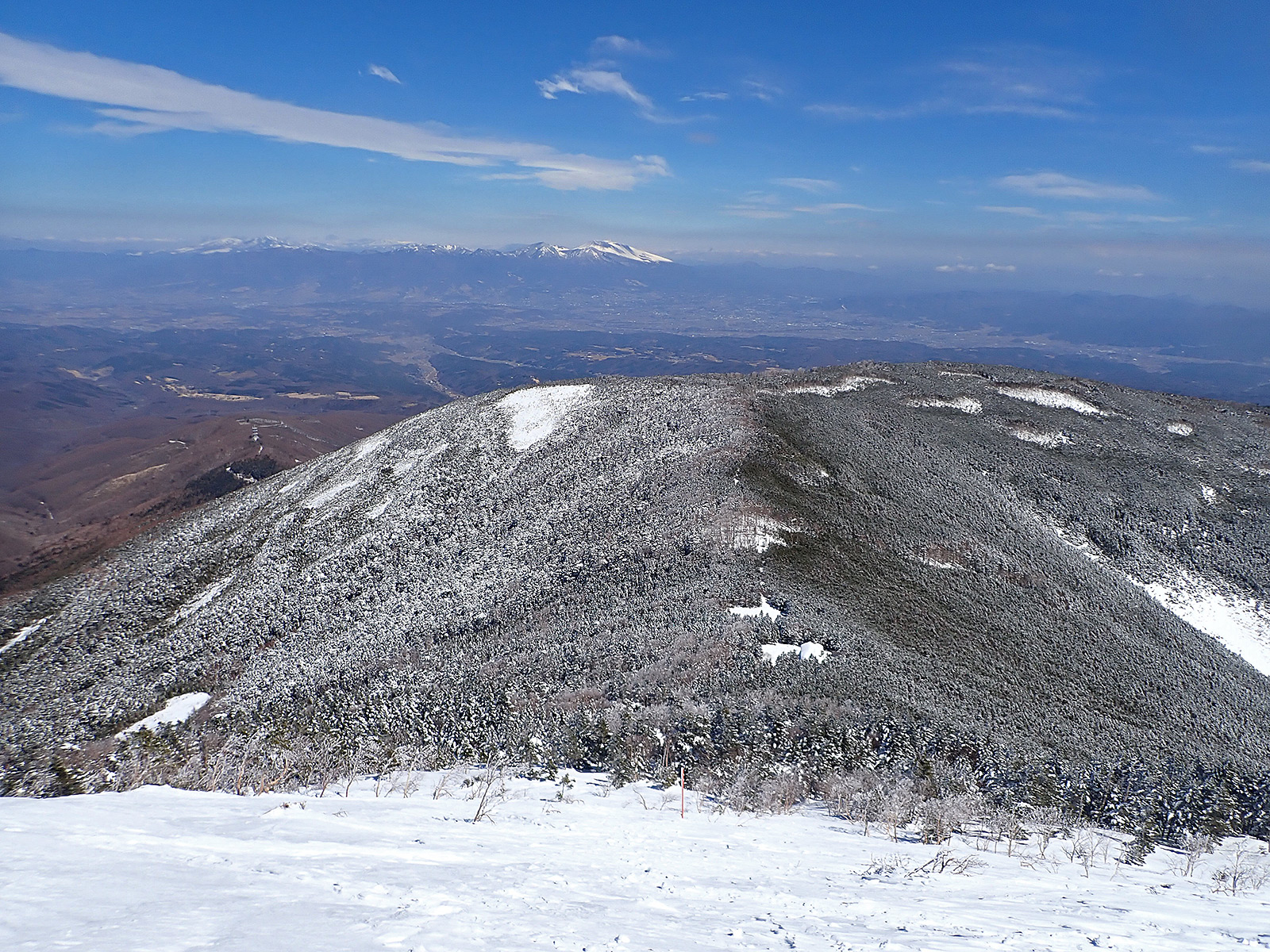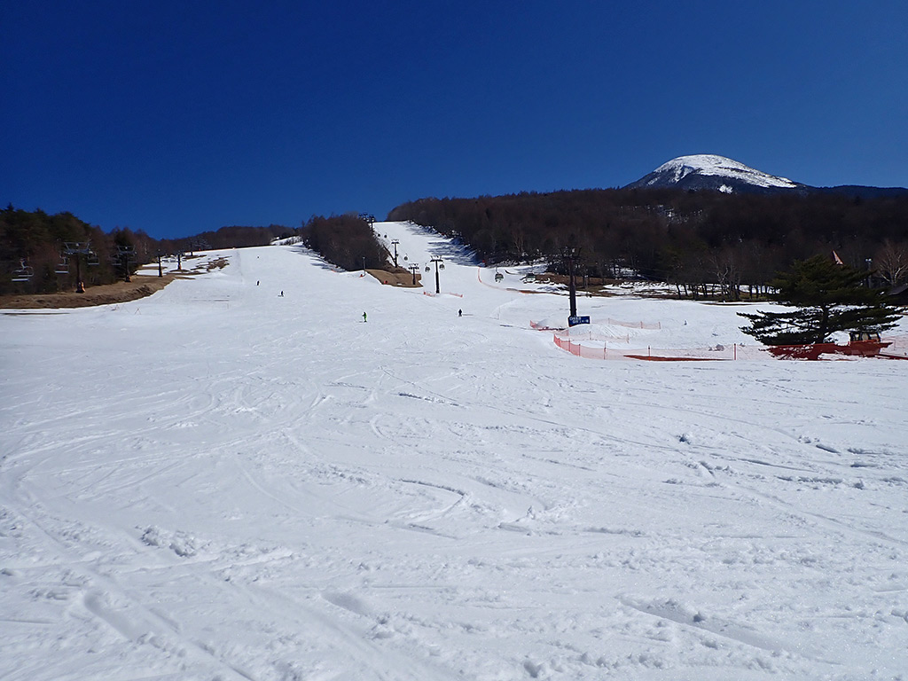 天狗岳と手前に丸山。丸山北西面のオープンバーンの積雪も増えたように見えます。