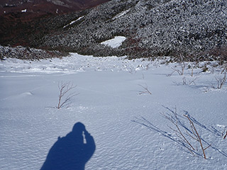 昨日は強風が吹き荒れたと思われますが、今日もまだ10m/秒くらいの強めの風が吹いています。登っている斜面は全体的に強風の影響を受けています。