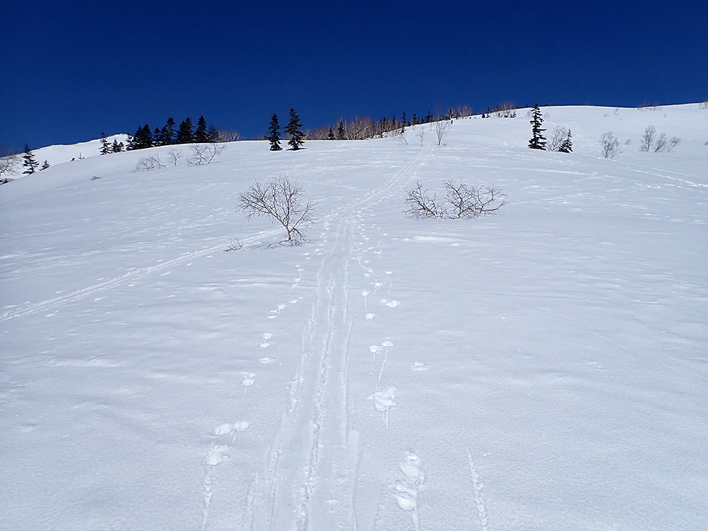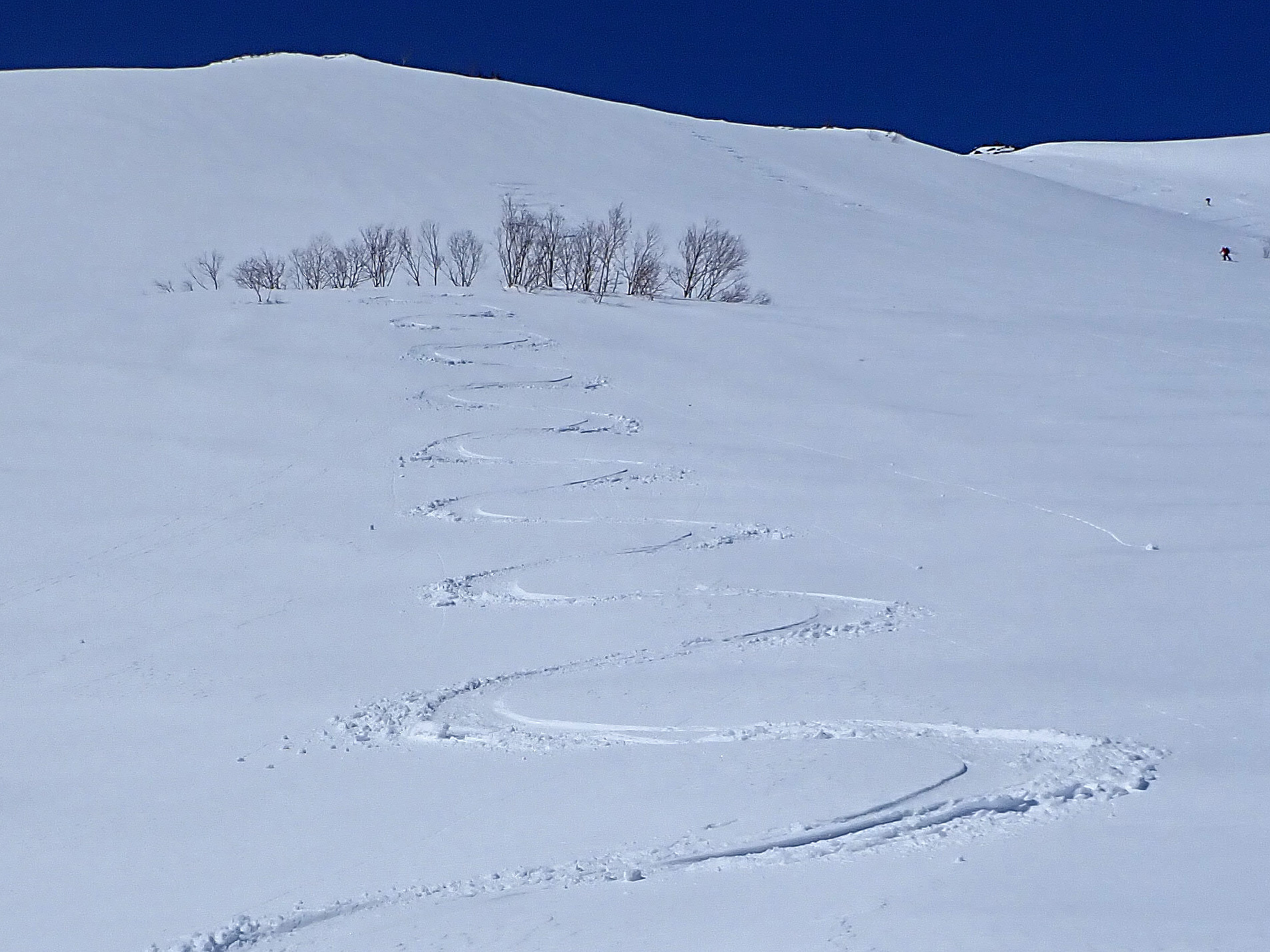 この先、急斜面に差し掛かる部分でびびりが入り(^^;、少しコース変更。