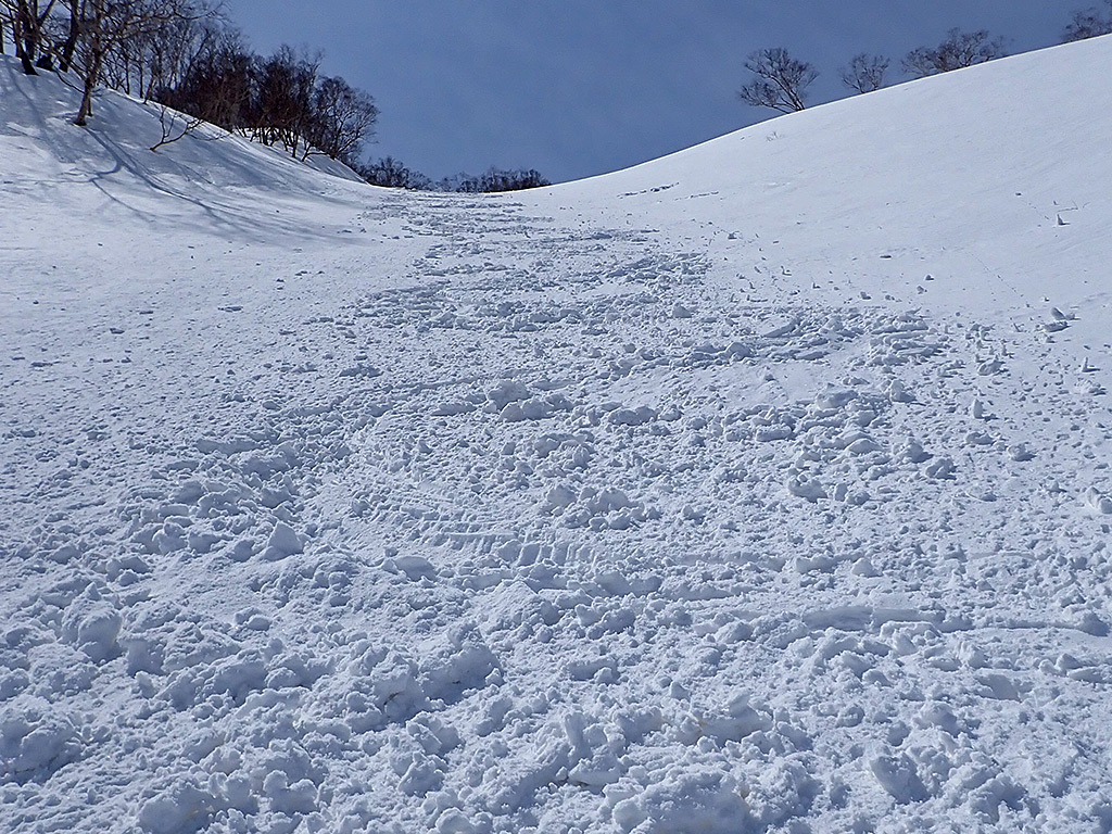 後半は少し斜度が増します。様子を見ながら慎重に滑って行きます。