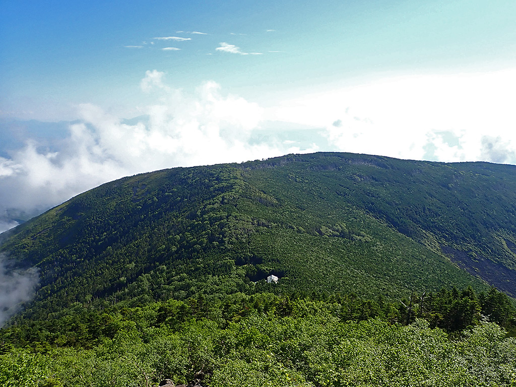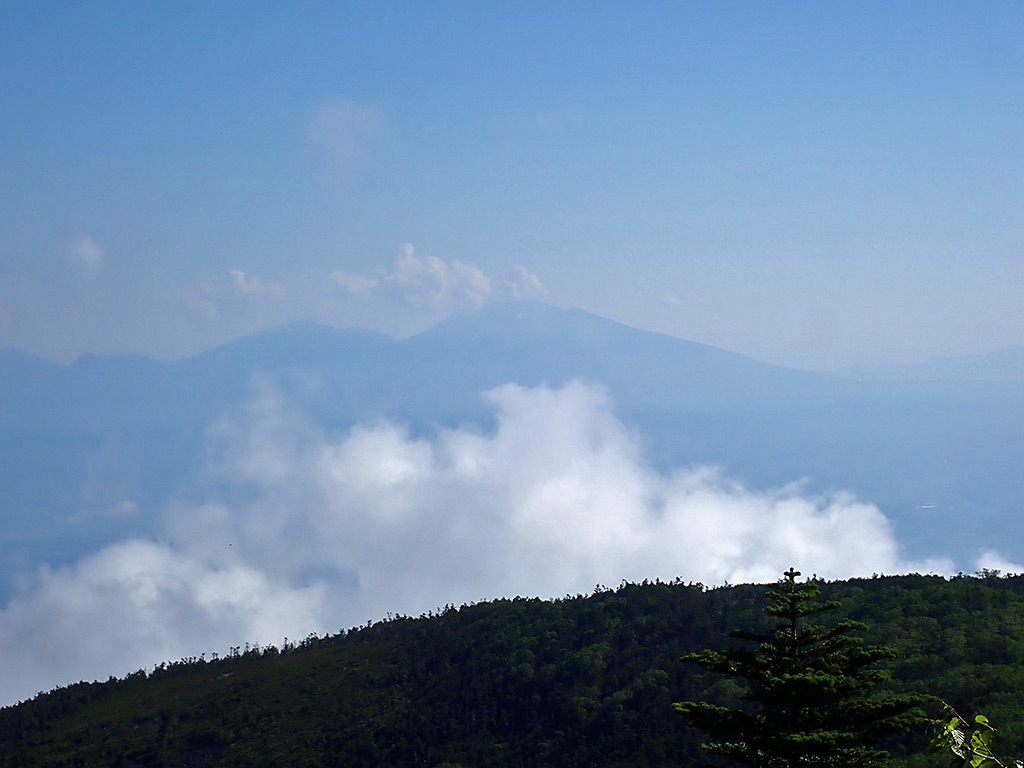 ただ今日は昨日までと違い、遠くはかすみ気味に加えガスも早くから湧き、北アルプスなどほとんど見えなかったのは残念でしたが、でも八ヶ岳はきれいに見えていました。 山頂で涼しい風に吹かれながら朝食を食べてから、急いで仕事に戻りました(^^;。