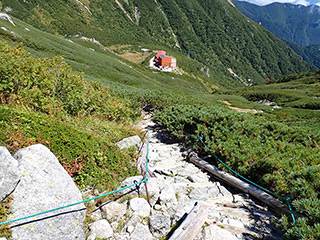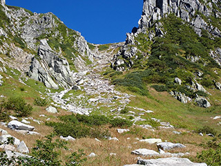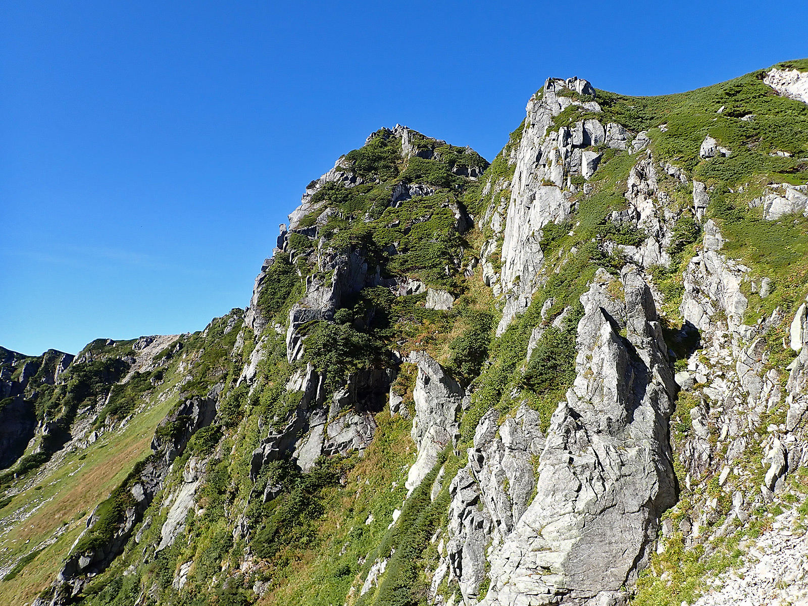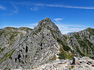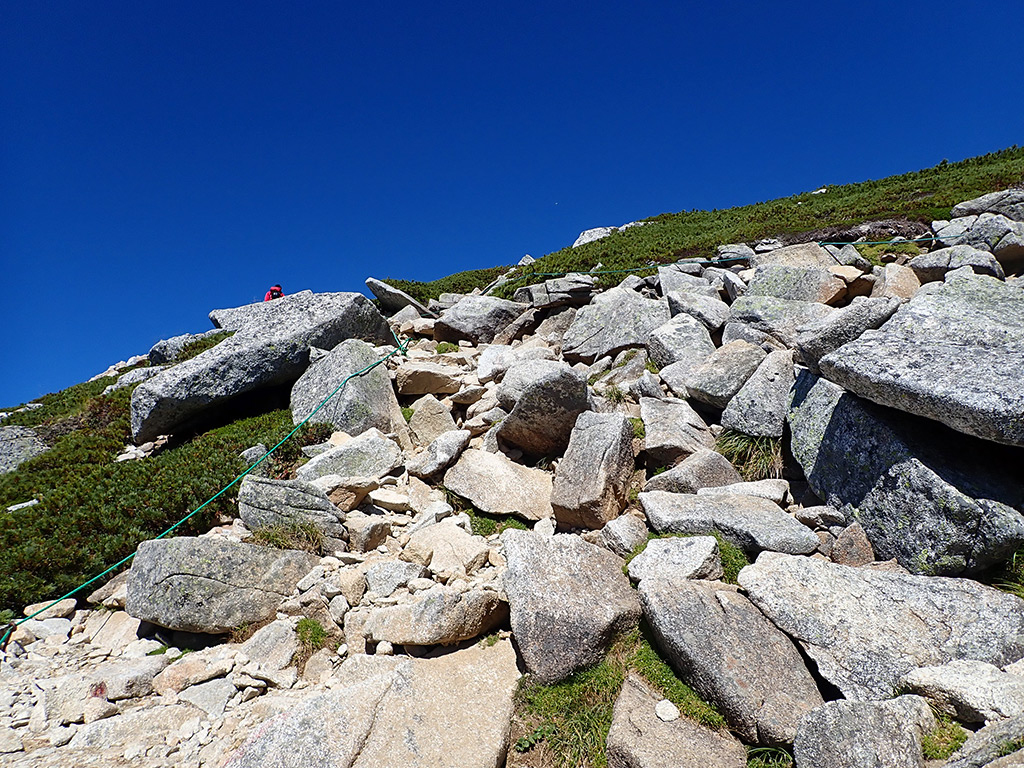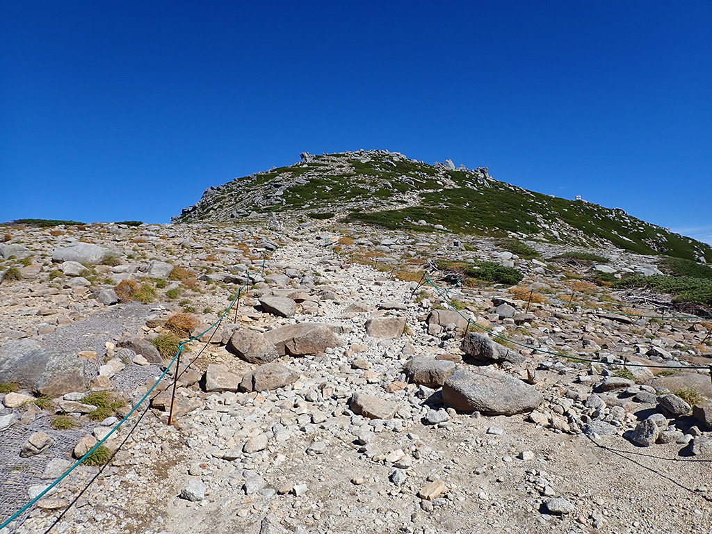 休憩後、9時43分、宝剣岳に向かいます。中岳は巻き道で。