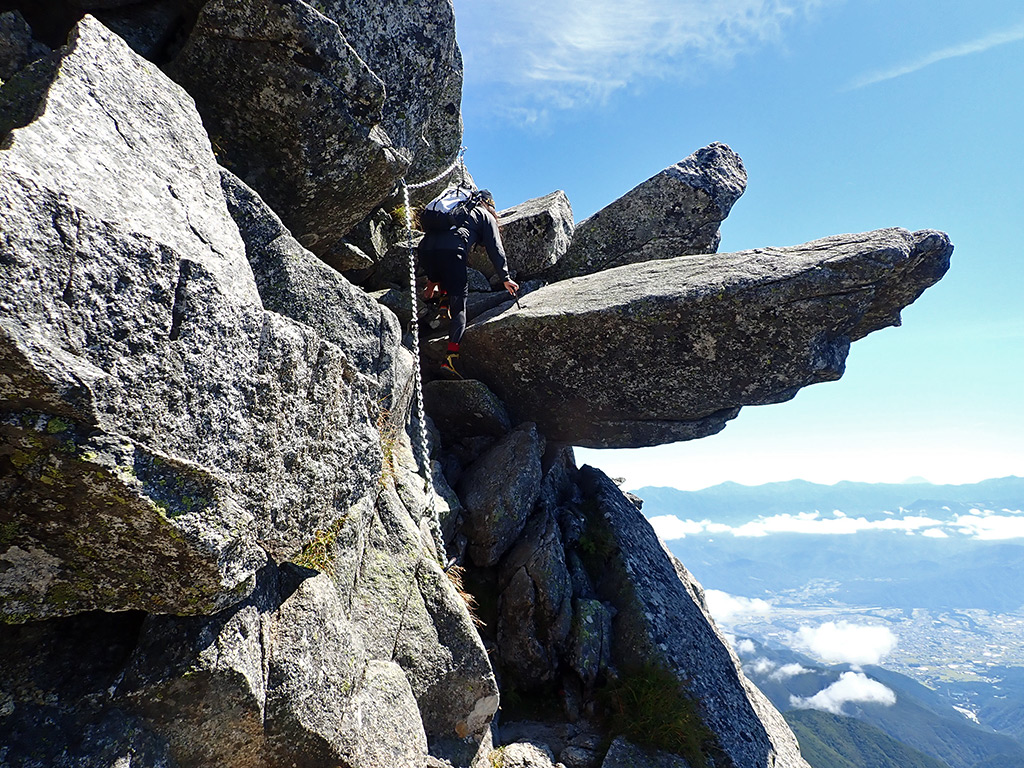 ほぼ80度、10mの鎖場。見たときはぎょっとしましたが、手がかり、足がかりがあり、それほど苦労せず登ることが出来ました。