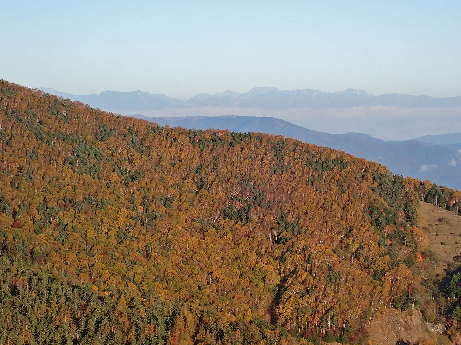 紅葉の斜面と爺ヶ岳〜白馬岳。