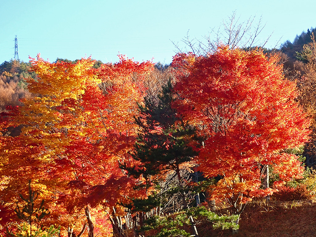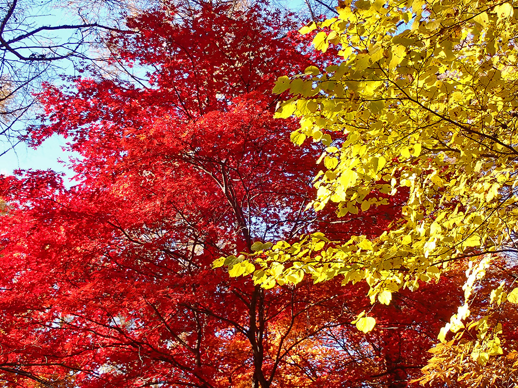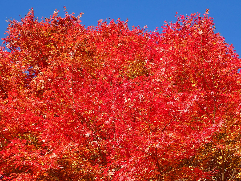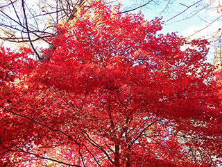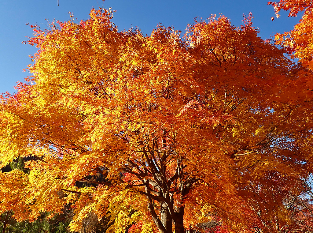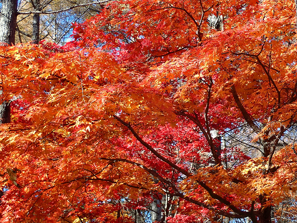 奥の紅葉が近くなり、日差しが無くても鮮やかに見えてきました。
