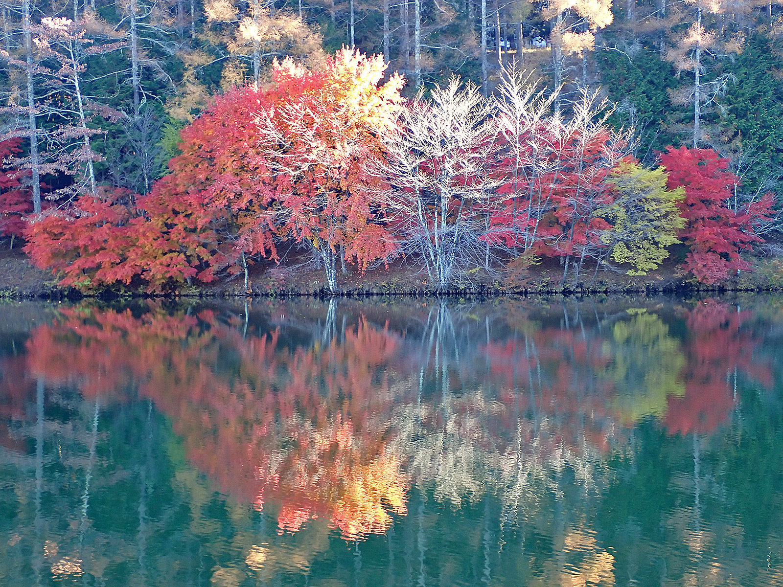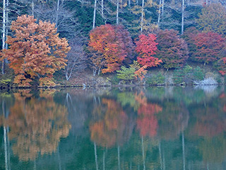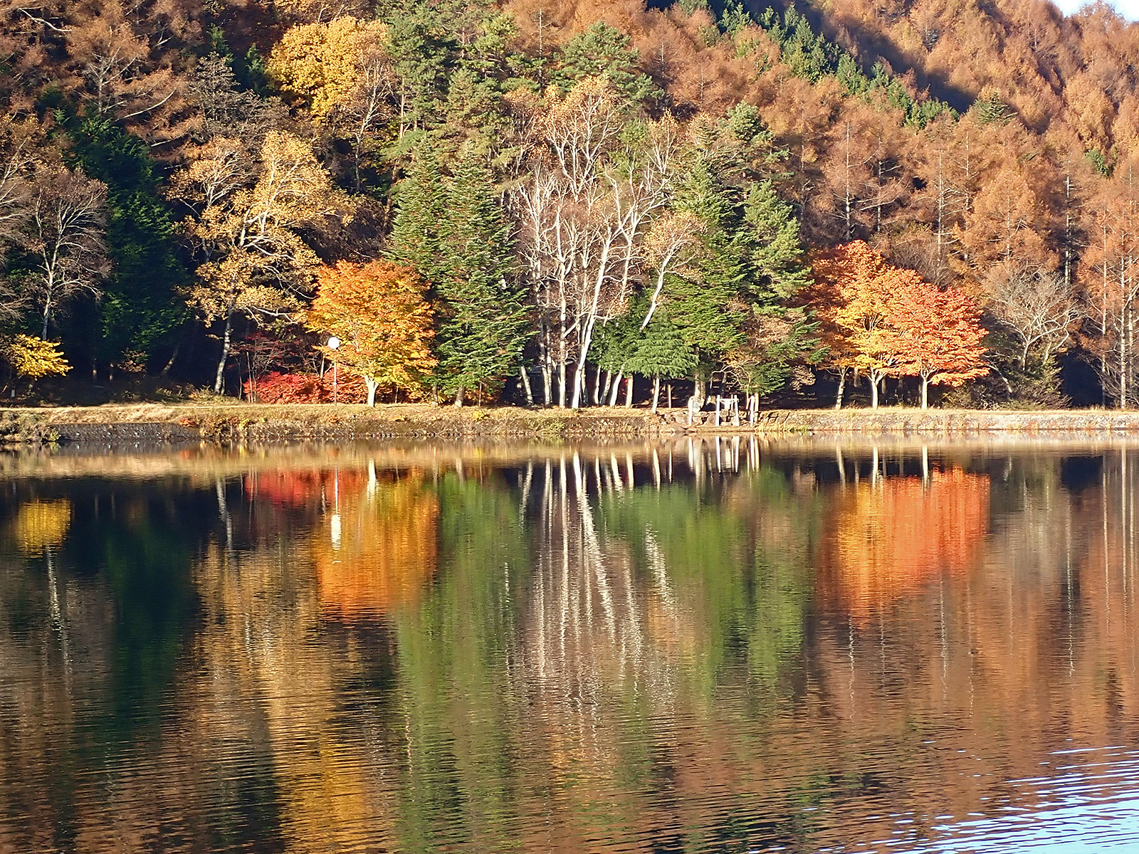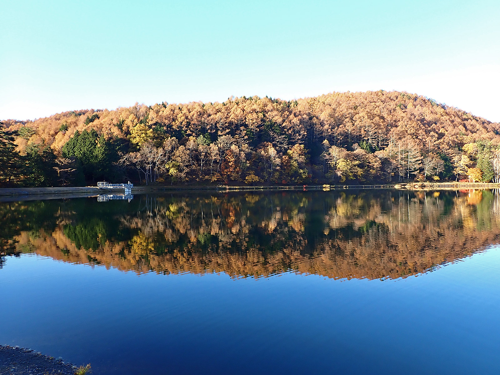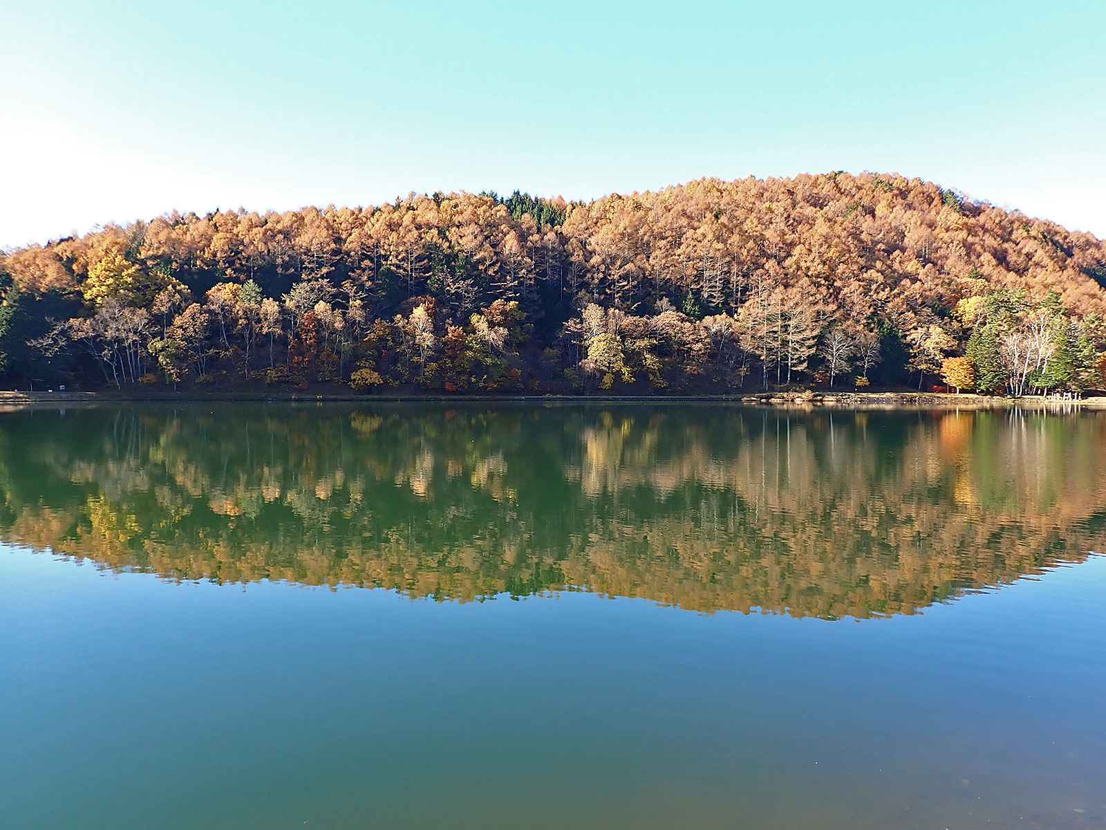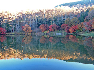 2日前に登った守屋山の紅葉がもう中腹まで降りてきていましたので、そうすると大見山、いずみ湖の紅葉ももう見頃だろうと期待してこの日の早朝、無風で水面への映り込みを期待して出かけて来ました。