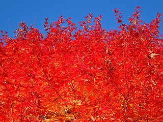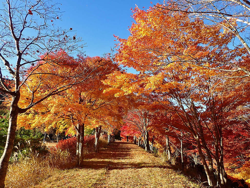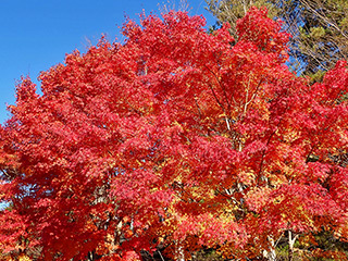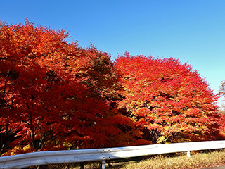 8時20分、歩き始めます。道路脇の紅葉が見事です。